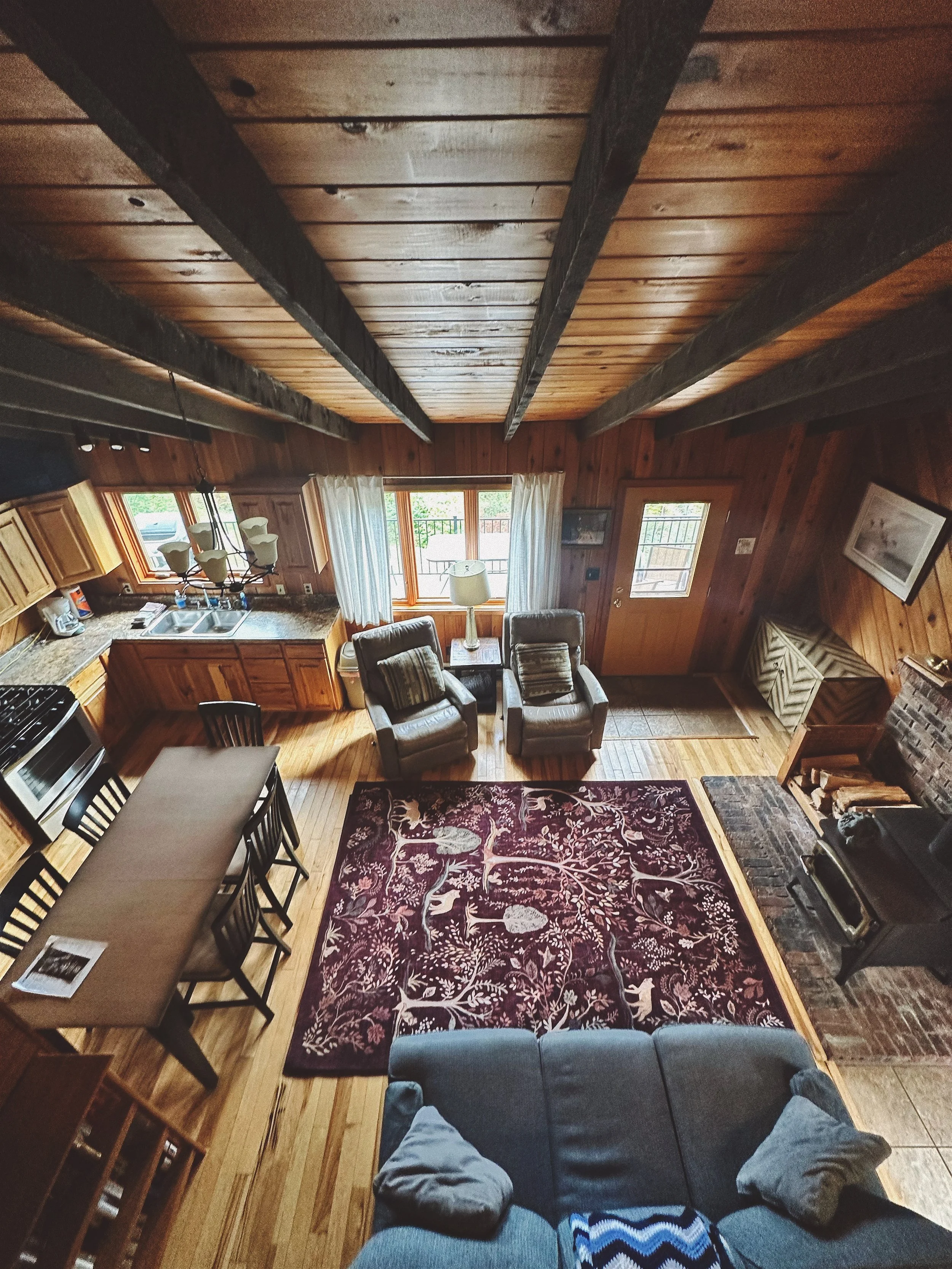 airbnb privacy with resort amenities. This secluded four bedroom, one-and-a-half bathroom cabin fits up to ten people, has a large driveway with room for up to three trailers, and your own fire pit.